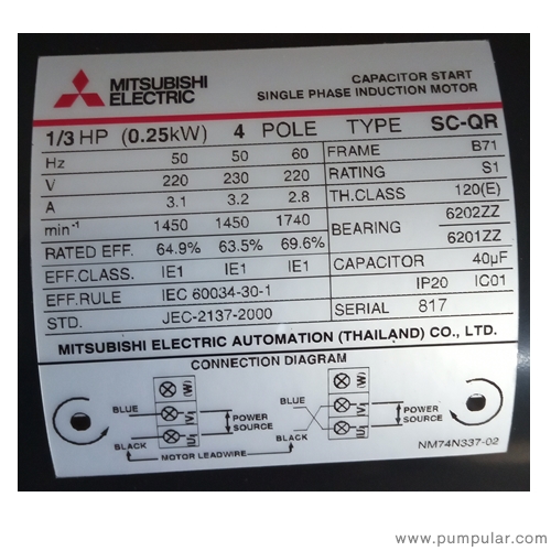 Mitsubishi SC-QR 1/3HP 4P 220V Single Phase Induction Motor