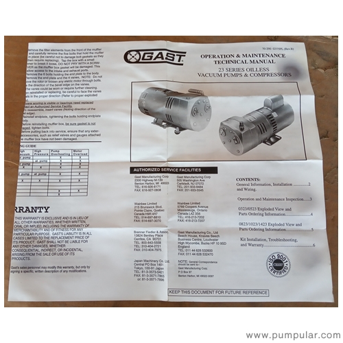 Rotary Vane Vacuum pumps Oilless Series Model 0523-V103-G21DX of Gast Manufacturing